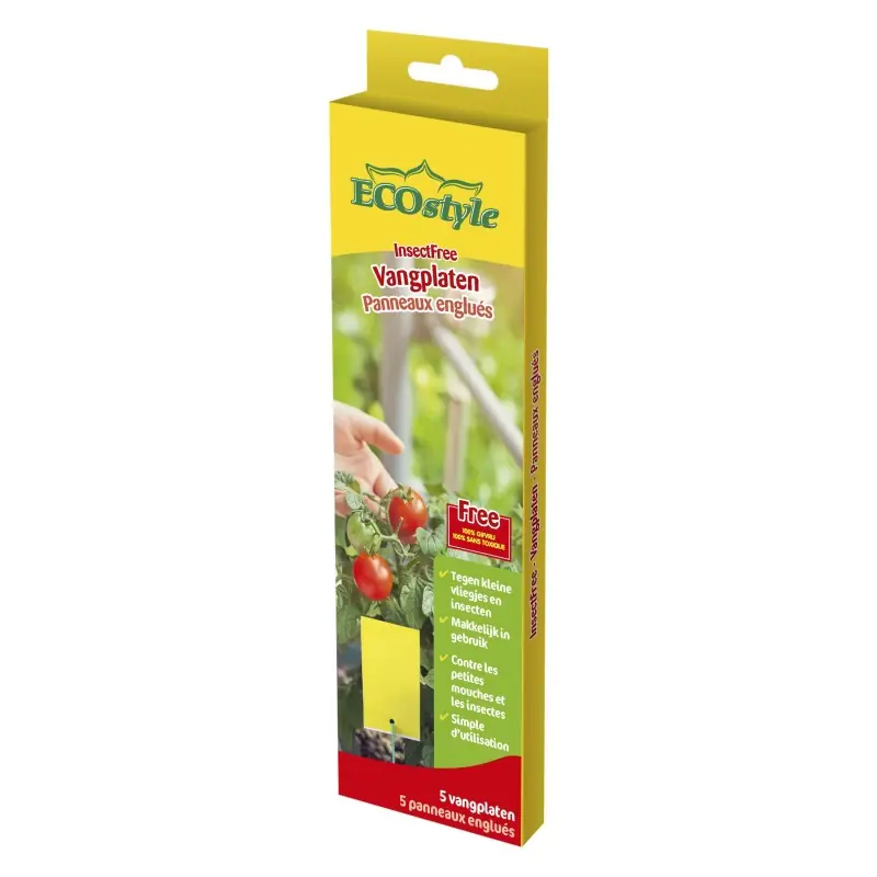 Sticky traps are effective adhesive traps for small flies and insects such as thrips, whitefly and fungus gnats. The yellow colour of the sticky trap attracts the insects, which are then caught by the adhesive. Environmentally friendly and completely odourless. The trap remains effective for 12 weeks.